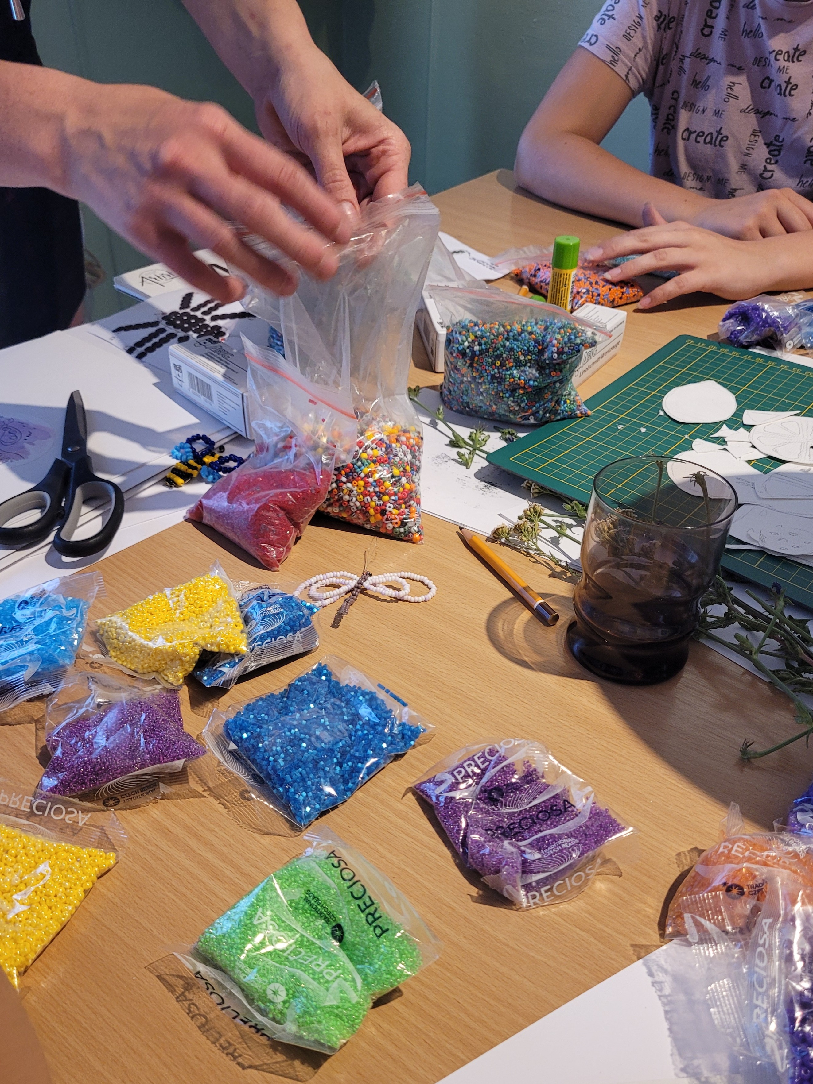 Děti si také vyzkoušely práci se skleněnými korálky, vyrobenými v Preciose a dozvěděly se více o výrobě korálků.